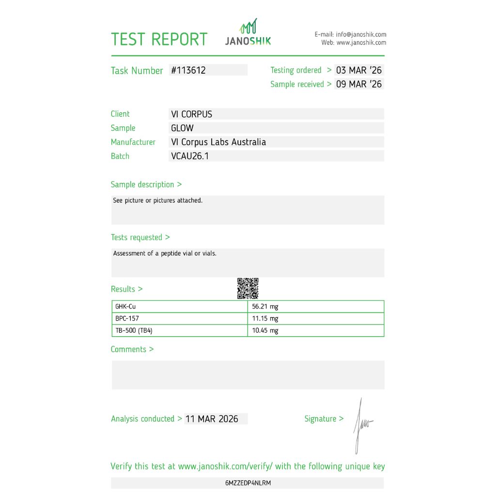 Disclaimer: GLOW Peptide is supplied strictly for laboratory research purposes. It is not intended for human consumption or human use.